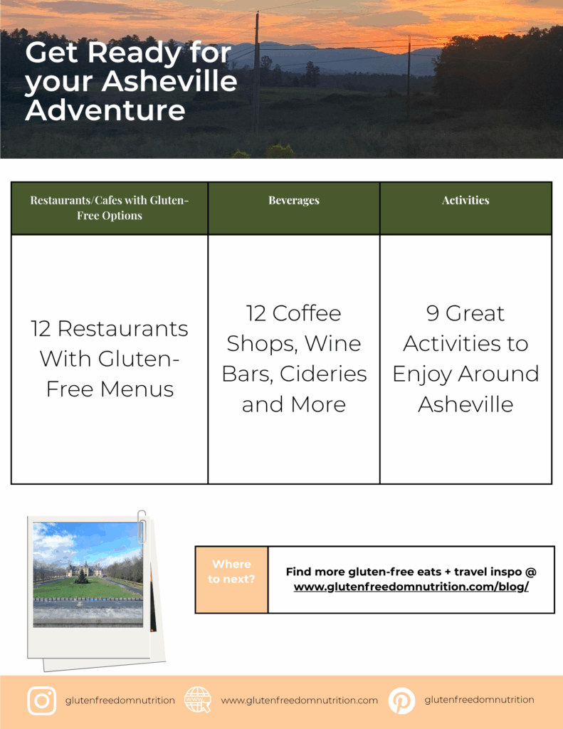 Want more gluten-free Asheville recommendations? Download my free Asheville Travel Guide for restaurants, drinks, and must-do experiences
