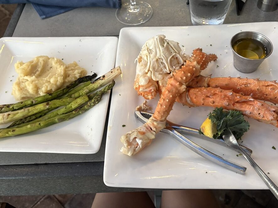 I ordered the crab legs with asparagus and potatoes, though if I’m being honest, I didn’t really need the sides. As my nieces would say, my stomach was only hungry for crab.